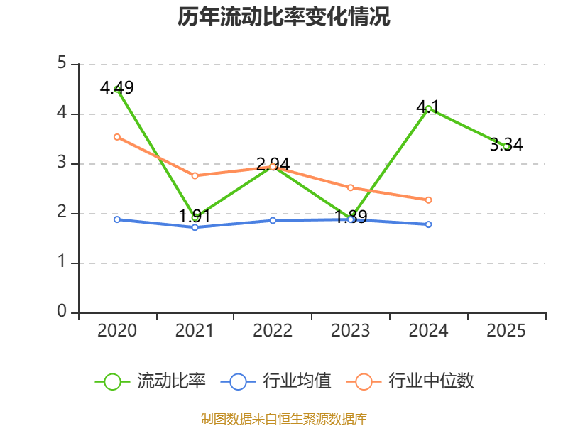 2025年,公司流动比率为3.34,速动比率为2.47。