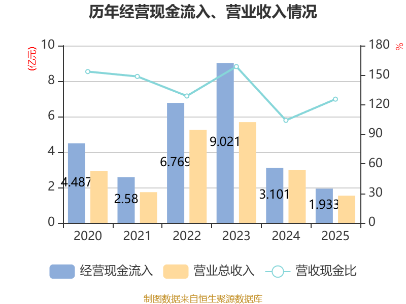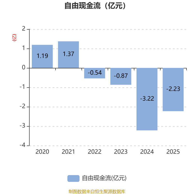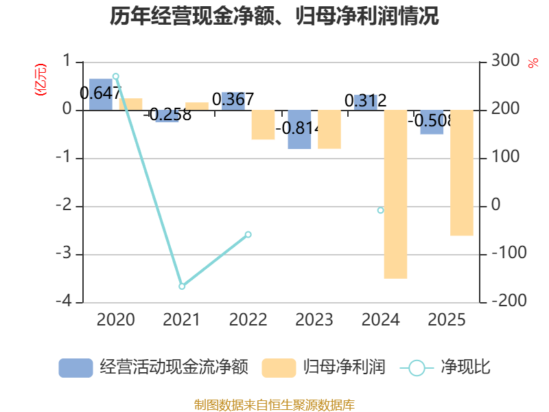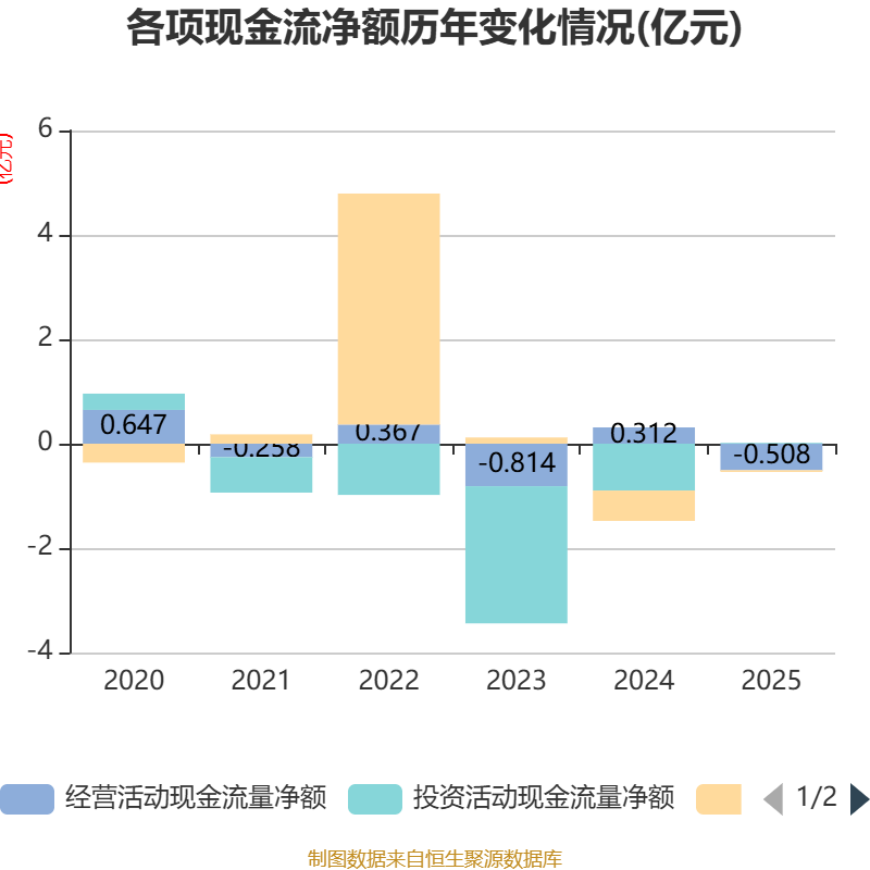 截至2025年,公司经营活动现金流净额为-5082.38万元,同比减少8206.95万元;筹资活动现金流净额-325.59万元,同比增加5496.75万元;投资活动现金流净额166.27万元,上年同期为-8974.37万元。
