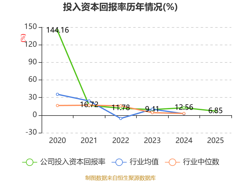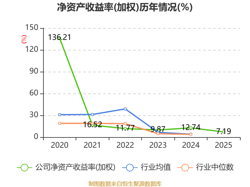 数据显示,2025年公司加权平均净资产收益率为7.19%,较上年同期下降5.55个百分点。公司2025年投入资本回报率为6.85%,较上年同期下降5.71个百分点。
