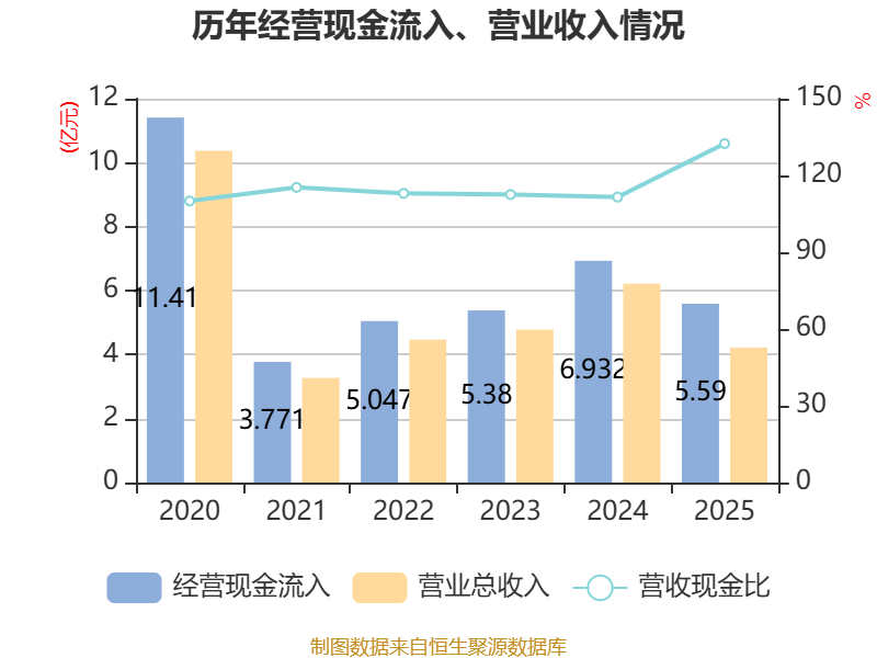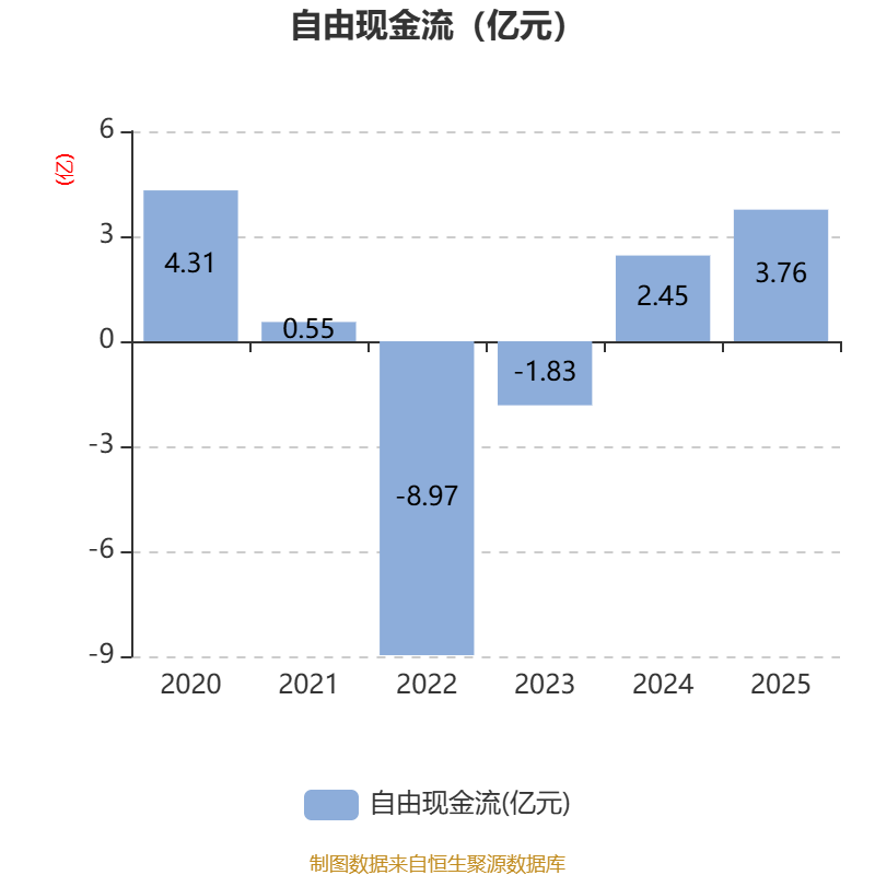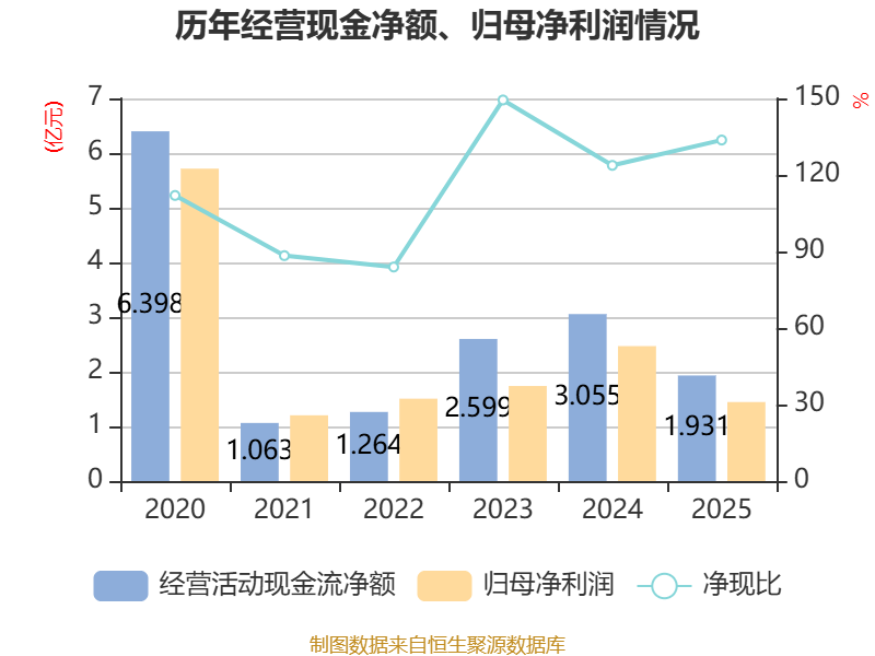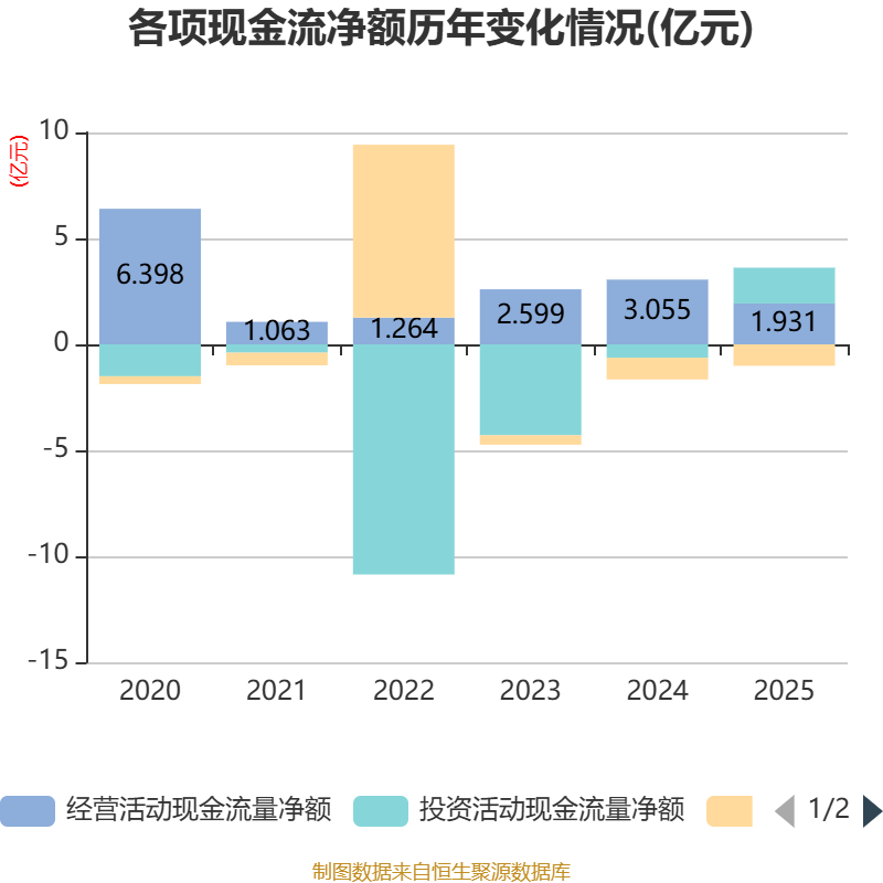 截至2025年,公司经营活动现金流净额为1.93亿元,同比下降36.77%;筹资活动现金流净额-1.01亿元,同比增加195.63万元;投资活动现金流净额1.69亿元,上年同期为-6300.69万元。