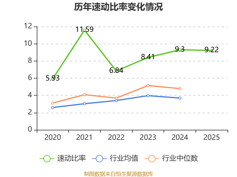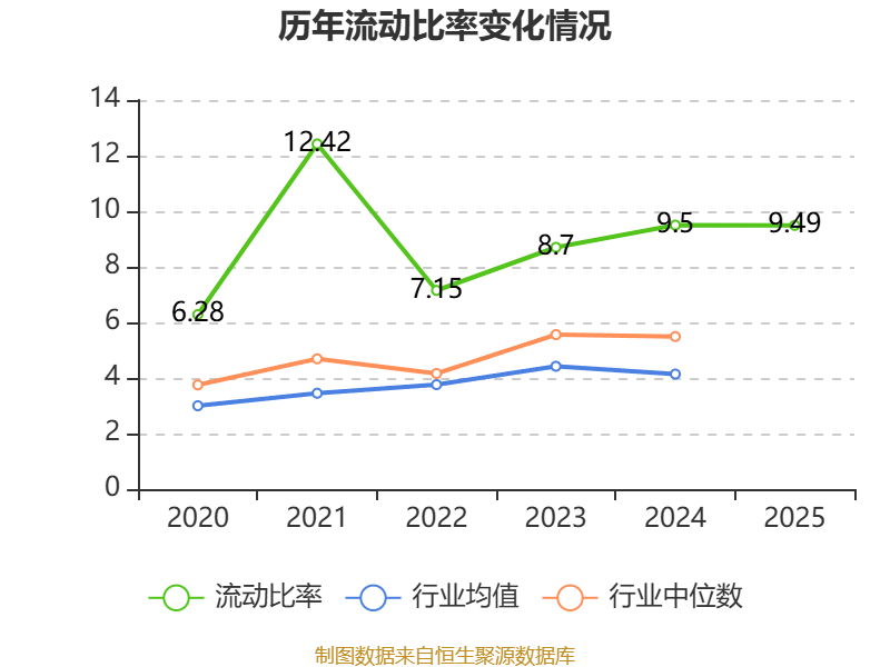 2025年,公司流动比率为9.49,速动比率为9.22。