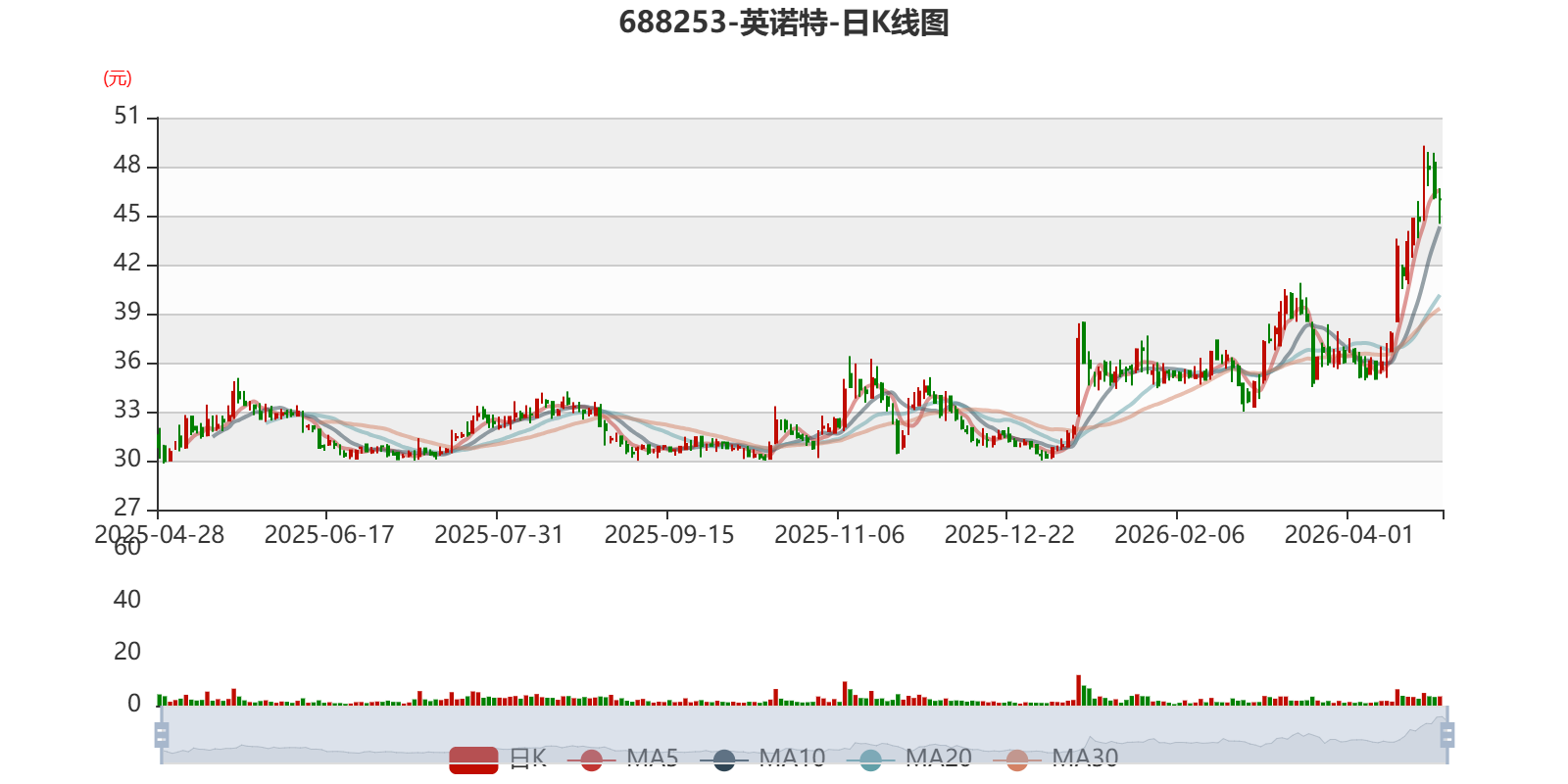 以4月27日收盘价计算,英诺特目前市盈率(TTM)约为43.62倍,市净率(LF)约3.07倍,市销率(TTM)约14.93倍。