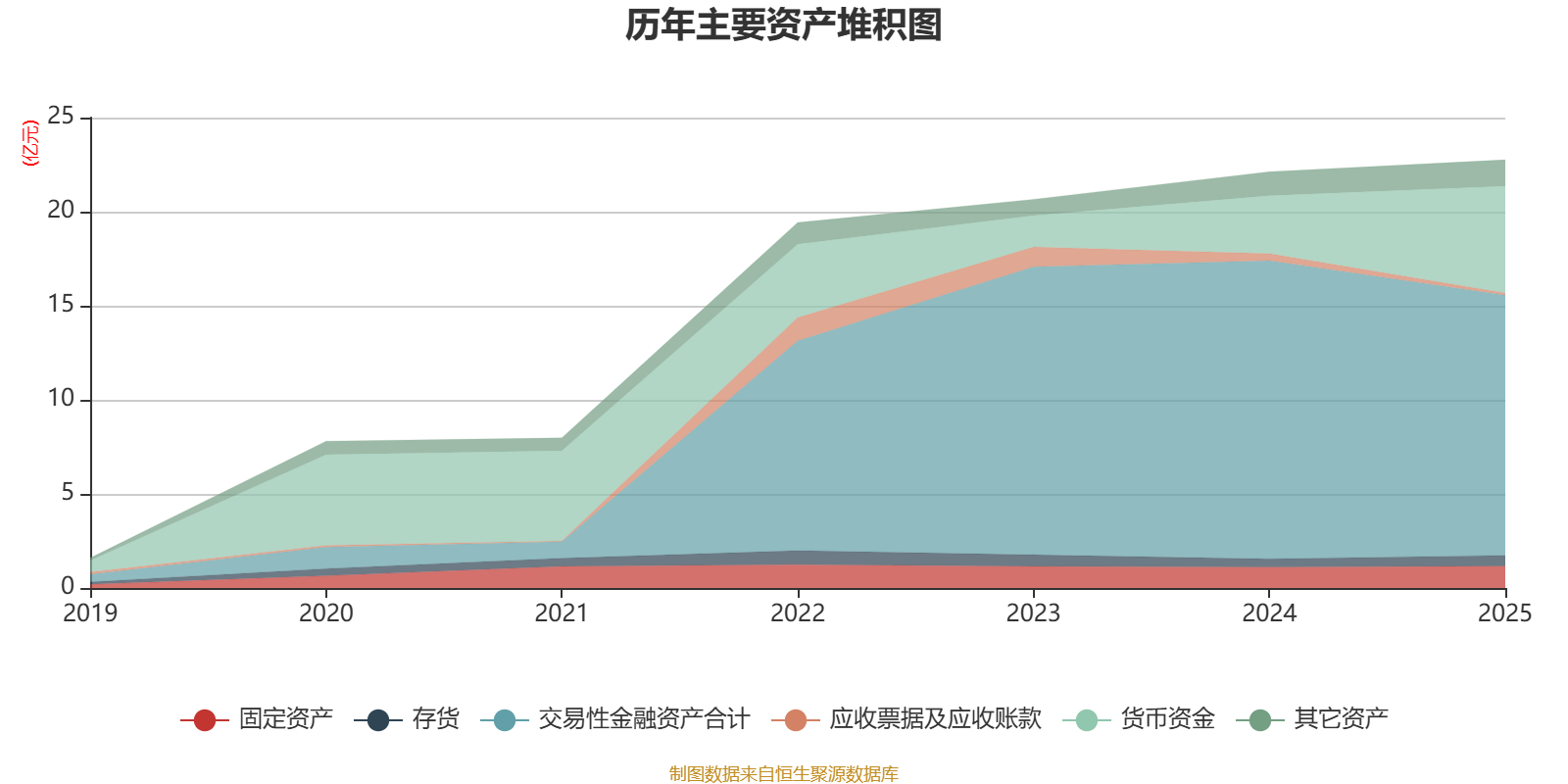 资产重大变化方面,截至2025年末,公司货币资金较上年末增加84.28%,占公司总资产比重上升11.01个百分点;交易性金融资产合计较上年末减少12.76%,占公司总资产比重下降10.86个百分点;应收票据及应收账款较上年末减少68.28%,占公司总资产比重下降1.18个百分点;长期股权投资较上年末增加117.98%,占公司总资产比重上升0.87个百分点。