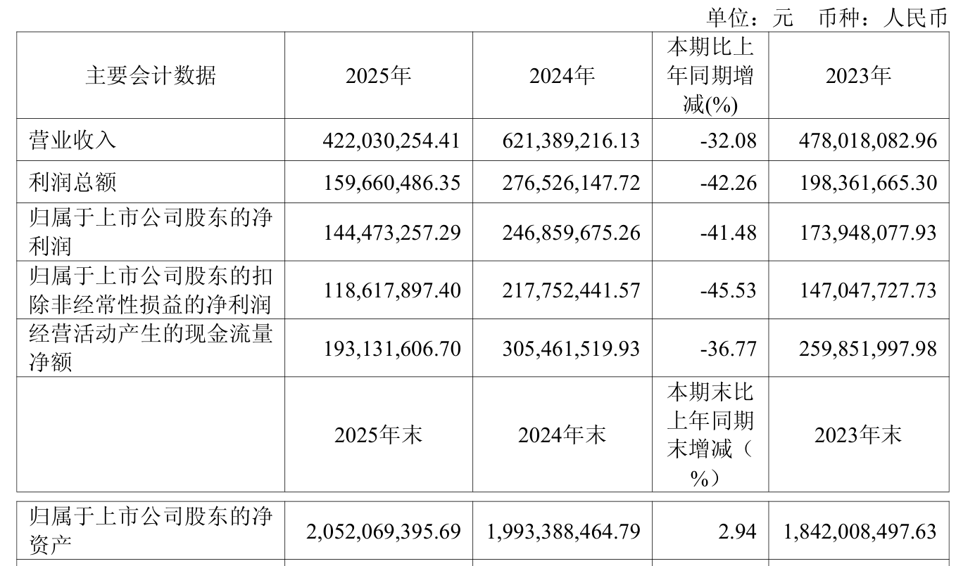 中证智能财讯英诺特(688253)4月28日披露2025年年度报告。2025年,公司实现营业总收入4.22亿元,同比下降32.08%;归母净利润1.44亿元,同比下降41.48%;扣非净利润1.19亿元,同比下降45.53%;经营活动产生的现金流量净额为1.93亿元,同比下降36.77%;报告期内,英诺特基本每股收益为1.06元,加权平均净资产收益率为7.19%。公司2025年度分配预案为:拟向全体股东每10股派现4.5元(含税)。
