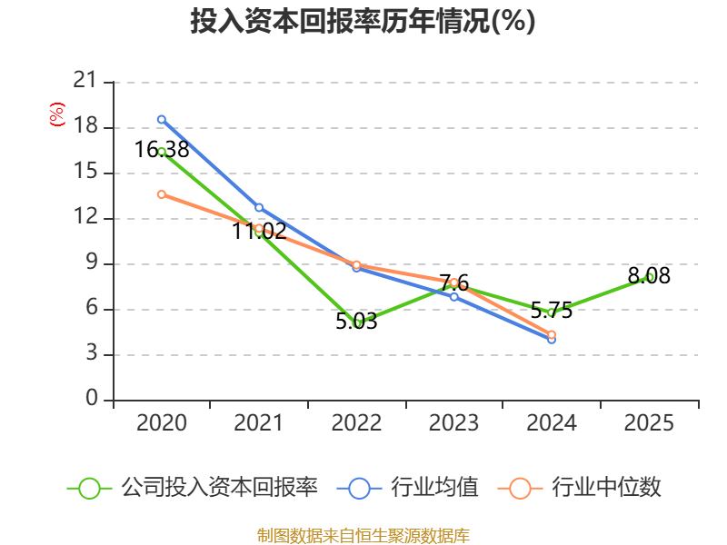 数据显示,2025年公司加权平均净资产收益率为8.31%,较上年同期上升2.03个百分点。公司2025年投入资本回报率为8.08%,较上年同期上升2.33个百分点。