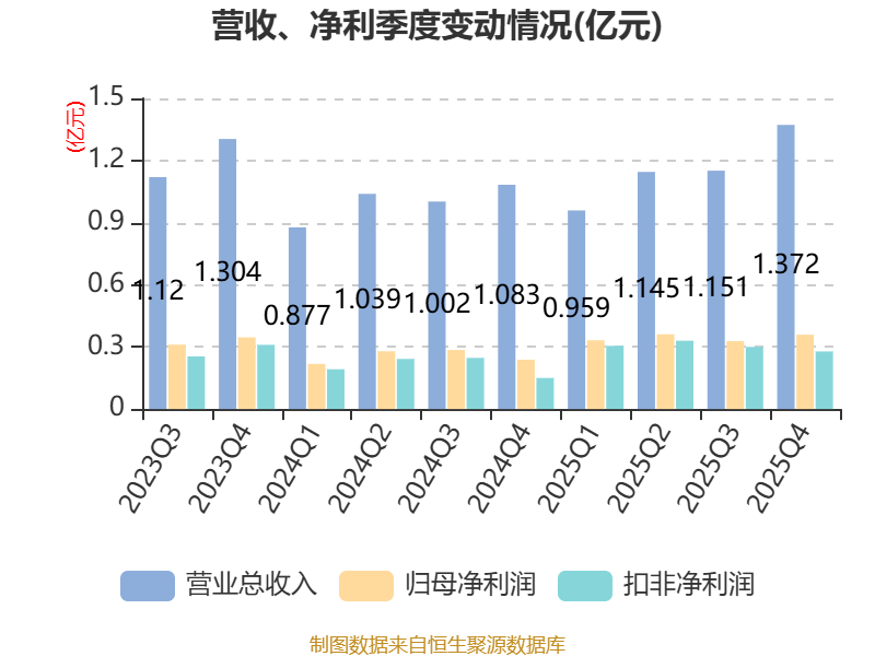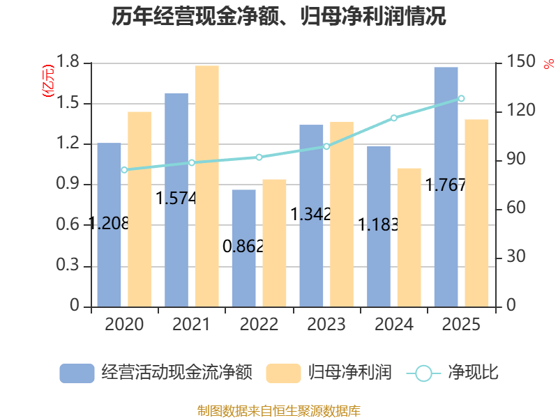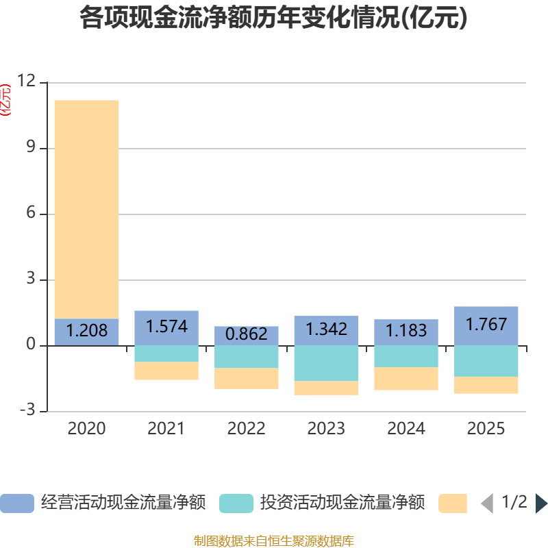截至2025年,公司经营活动现金流净额为1.77亿元,同比增长49.42%;筹资活动现金流净额-7744.66万元,同比增加2662.22万元;投资活动现金流净额-1.43亿元,上年同期为-1.01亿元。