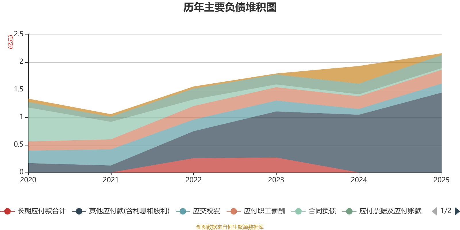 负债重大变化方面,截至2025年末,公司其他应付款(含利息和股利)较上年末增加38.27%,占公司总资产比重上升1.83个百分点;应交税费较上年末增加57.44%,占公司总资产比重上升0.29个百分点;应付票据及应付账款较上年末增加22.87%,占公司总资产比重上升0.18个百分点;合同负债较上年末减少21.8%,占公司总资产比重下降0.05个百分点。