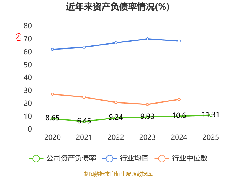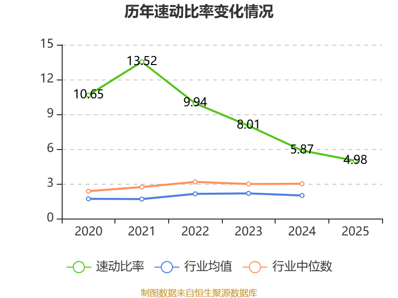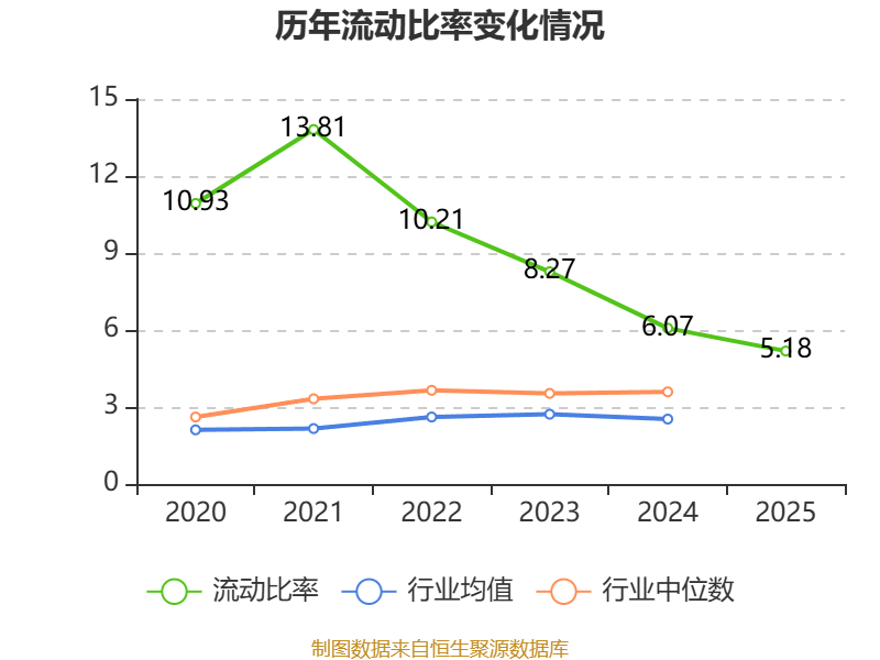 2025年,公司流动比率为5.18,速动比率为4.98。