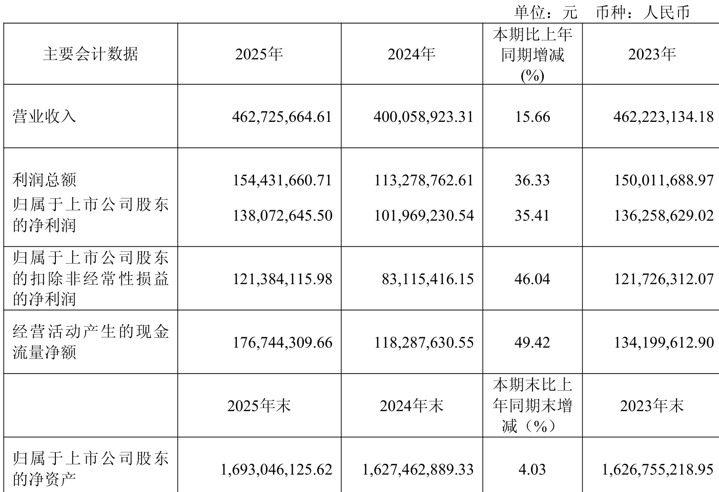 中证智能财讯伟思医疗(688580)4月28日披露2025年年度报告。2025年,公司实现营业总收入4.63亿元,同比增长15.66%;归母净利润1.38亿元,同比增长35.41%;扣非净利润1.21亿元,同比增长46.04%;经营活动产生的现金流量净额为1.77亿元,同比增长49.42%;报告期内,伟思医疗基本每股收益为1.44元,加权平均净资产收益率为8.31%。公司2025年度分配预案为:拟向全体股东每10股派现10.82元(含税)。