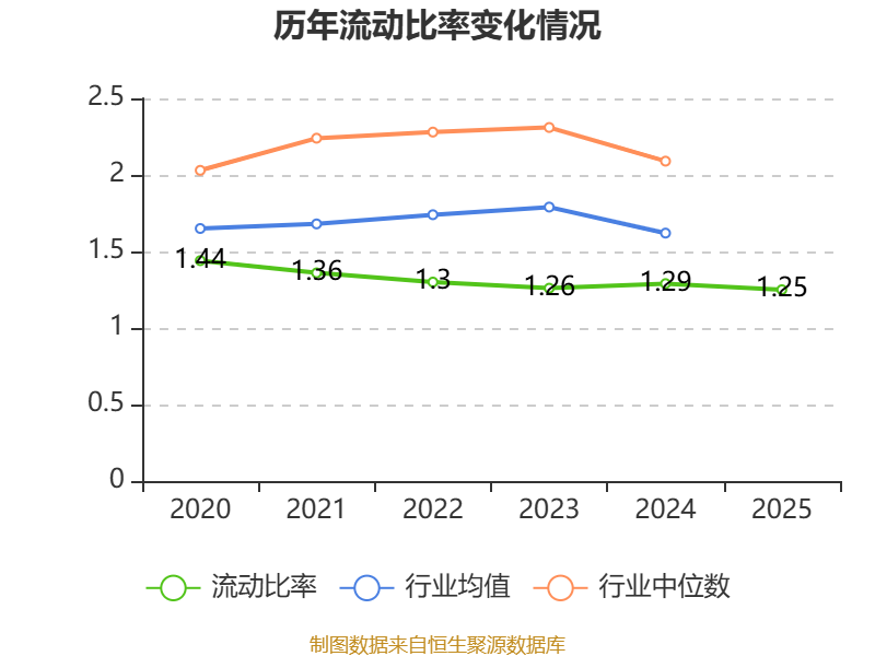 2025年,公司流动比率为1.25,速动比率为1.06。