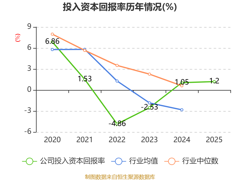 数据显示,2025年公司加权平均净资产收益率为0.63%,较上年同期上升0.07个百分点。公司2025年投入资本回报率为1.2%,较上年同期上升0.15个百分点。