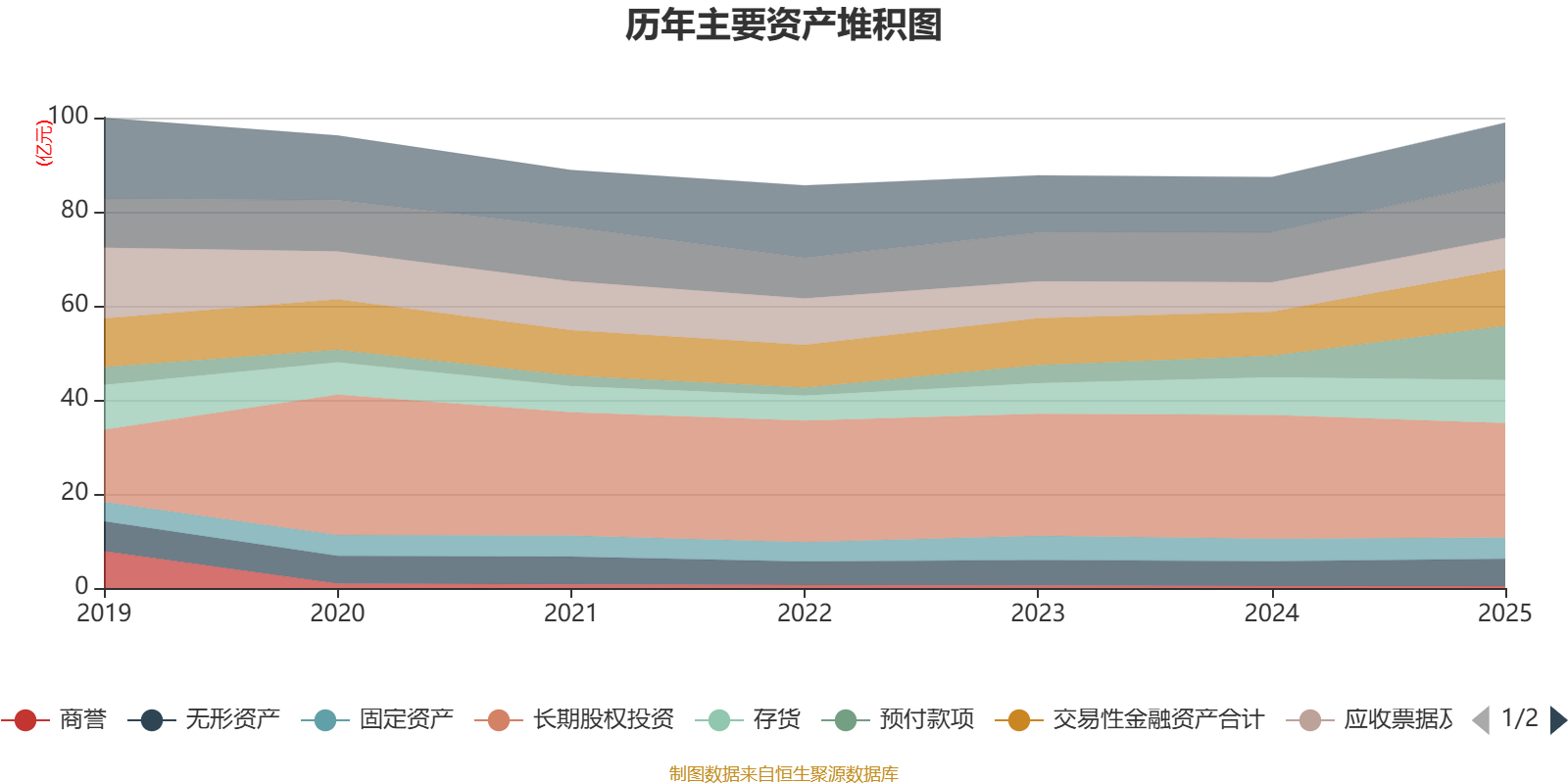 资产重大变化方面,截至2025年末,公司预付款项较上年末增加152.72%,占公司总资产比重上升6.44个百分点;长期股权投资较上年末减少7.47%,占公司总资产比重下降5.5个百分点;交易性金融资产合计较上年末增加28.62%,占公司总资产比重上升1.45个百分点;其他流动资产较上年末增加380.56%,占公司总资产比重上升1.12个百分点。