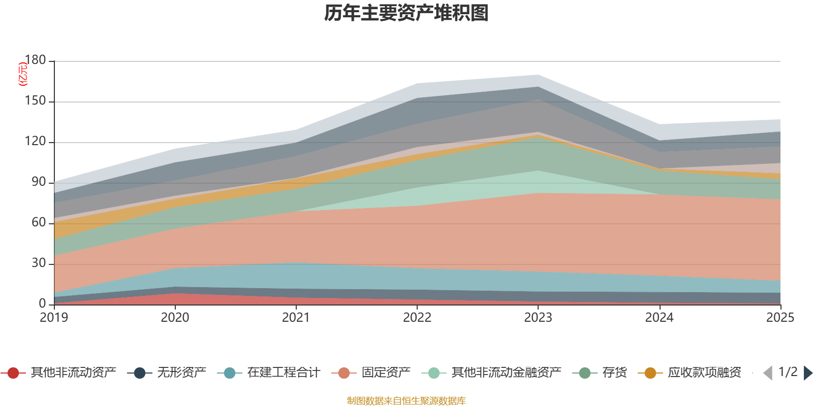 资产重大变化方面,截至2025年末,公司交易性金融资产合计占公司总资产的5.59%,上年末为0;在建工程合计较上年末减少25.59%,占公司总资产比重下降2.47个百分点;存货较上年末减少14.76%,占公司总资产比重下降2.23个百分点;应收款项融资较上年末增加155.08%,占公司总资产比重上升1.84个百分点。