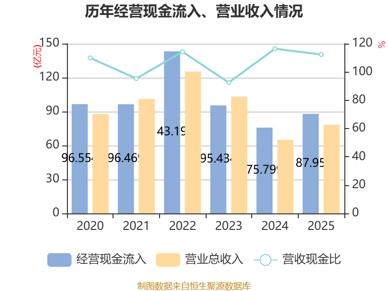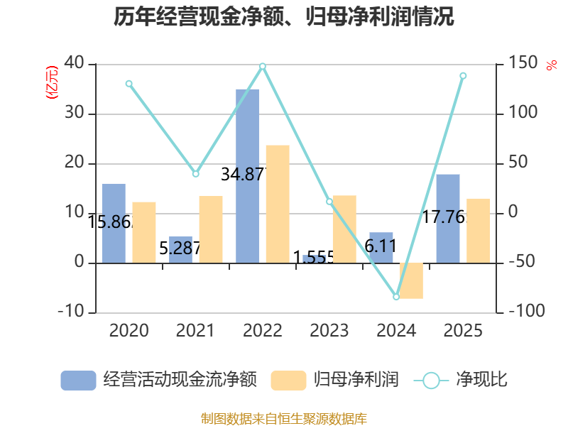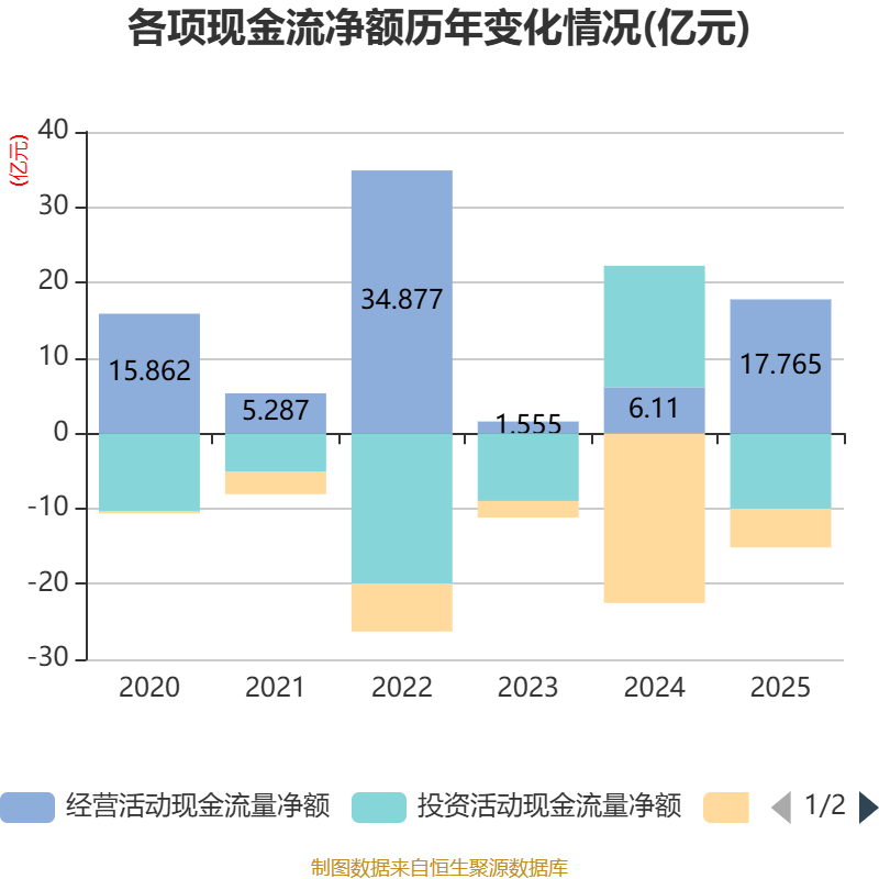截至2025年,公司经营活动现金流净额为17.77亿元,同比增长190.75%;筹资活动现金流净额-5.14亿元,同比增加17.4亿元;投资活动现金流净额-10.02亿元,上年同期为16.12亿元。