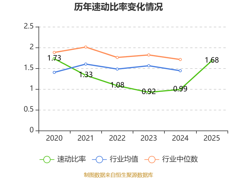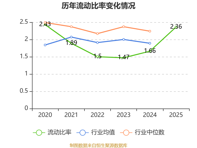 2025年,公司流动比率为2.36,速动比率为1.68。