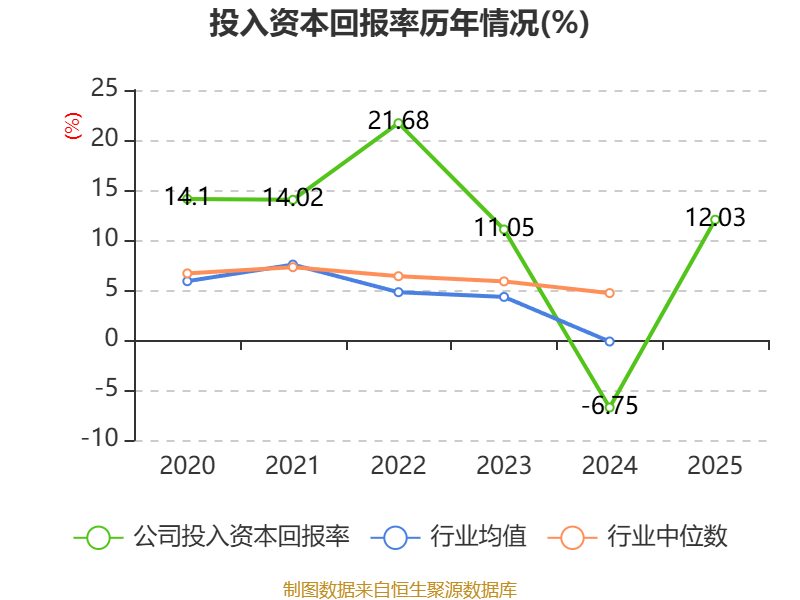 数据显示,2025年公司加权平均净资产收益率为11.99%,较上年同期上升18.68个百分点。公司2025年投入资本回报率为12.03%,较上年同期上升18.78个百分点。