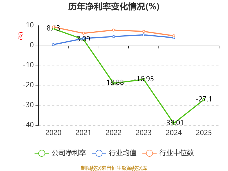 数据显示,2025年公司加权平均净资产收益率为-18.62%,较上年同期下降3.71个百分点。公司2025年投入资本回报率为-15.74%,较上年同期下降2.38个百分点。