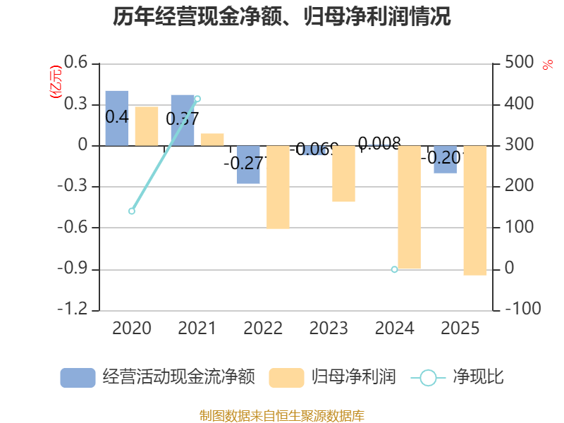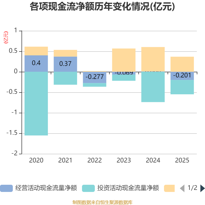 截至2025年,公司经营活动现金流净额为-2006.89万元,同比减少2085.66万元;筹资活动现金流净额3671.33万元,同比减少2279.79万元;投资活动现金流净额-3492.52万元,上年同期为-7395.02万元。