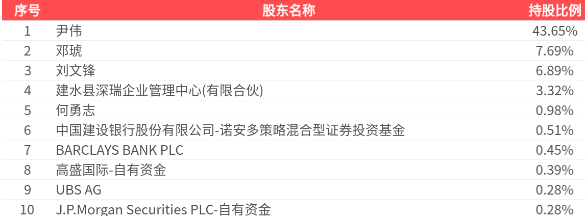 公司股东户数为1.45万户,前十大股东持股数量为1.02亿股,占总股本比例为64.43%,前十大股东持股情况如下: