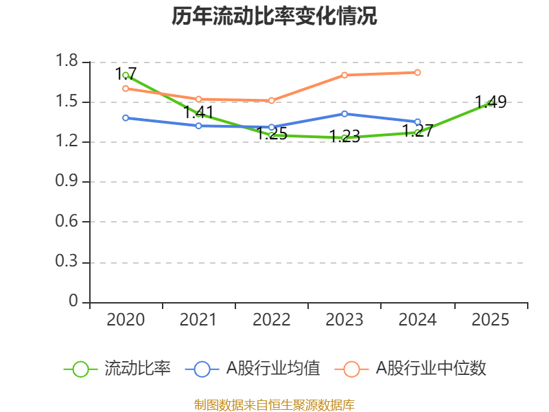 2025年,公司流动比率为1.49,速动比率为0.42。