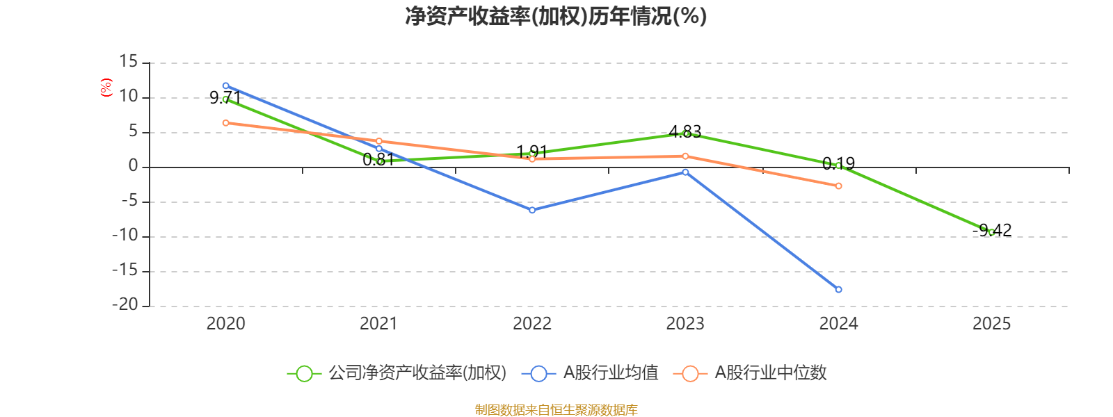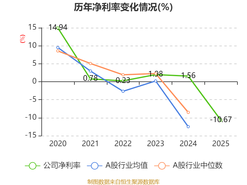 数据显示,2025年公司平均净资产收益率为-9.42%,较上年同期下降9.61个百分点。