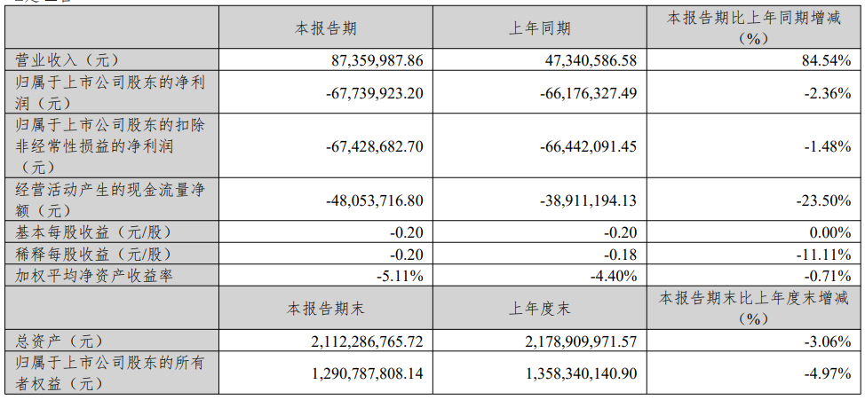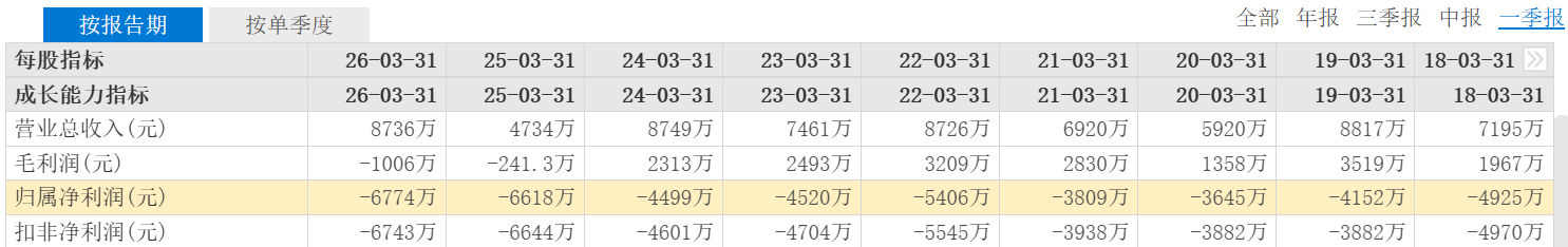 4月27日晚间,思特奇(300608)披露2026年一季报,公司营业收入为8736万元,同比上升84.54%;归母净利润自去年同期亏损6618万元变为亏损6774万元,亏损额略有扩大;扣非归母净利润自去年同期亏损6644万元变为亏损6743万元,亏损额略有扩大;经营现金流净额为-4805万元,同比下降23.50%。