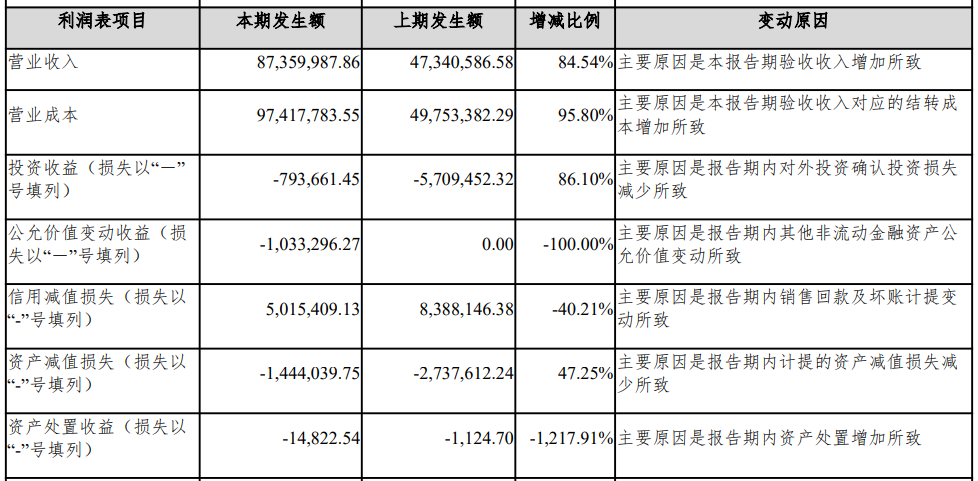 一季报对公司部分财务指标的变动做出了说明,其中,本期营业收入大增84.54%,主要原因是本报告期验收收入增加所致;营业成本大增95.80%,主要原因是本报告期验收收入对应的结转成本增加所致。公司营业成本增速超过营收增速,部分挤压了公司的利润空间。