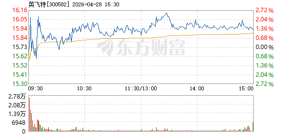 英飞特盘中快速回调,5分钟内跌幅超过2%,截至9点36分,报15.63元,成交1.34亿元,换手率3.84%。