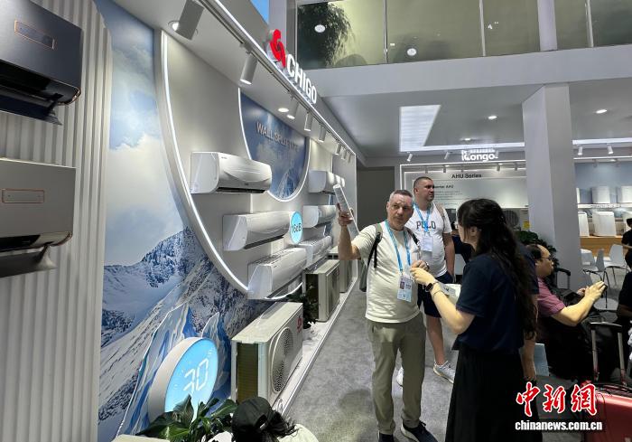境外采购商正在第139届广交会上了解中国企业展出的智能空调产品。记者程景伟摄