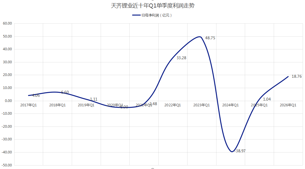 一季报数据显示,当期天齐锂业投资净收益为4.75亿元,较2025年同期增长3.2亿元左右。这也进一步放大公司的业绩弹性。