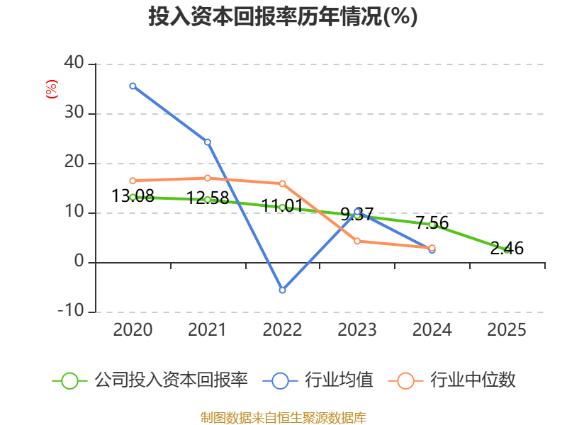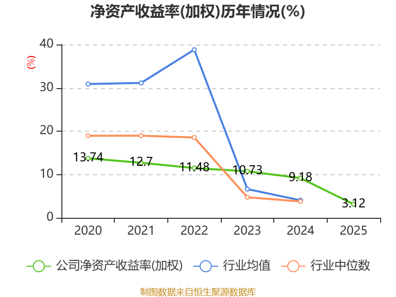 数据显示,2025年公司加权平均净资产收益率为3.12%,较上年同期下降6.06个百分点。公司2025年投入资本回报率为2.46%,较上年同期下降5.1个百分点。