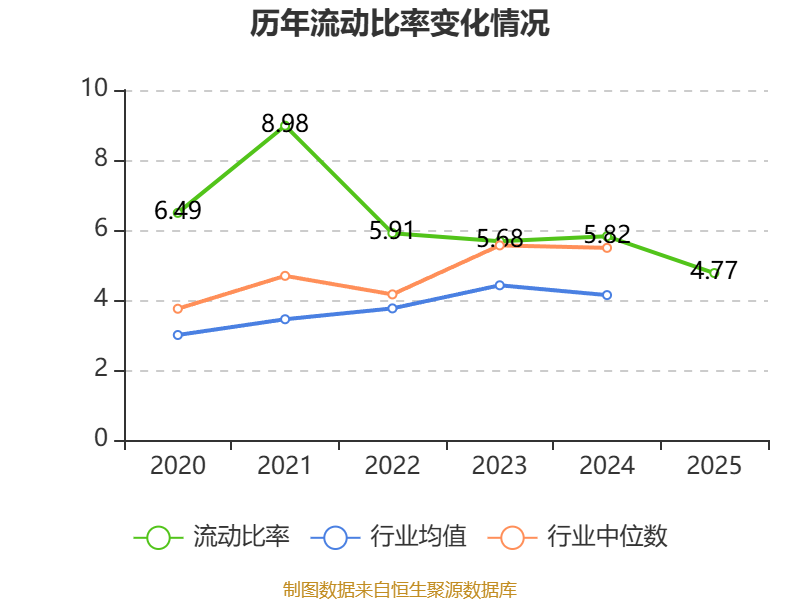 2025年,公司流动比率为4.77,速动比率为4.08。
