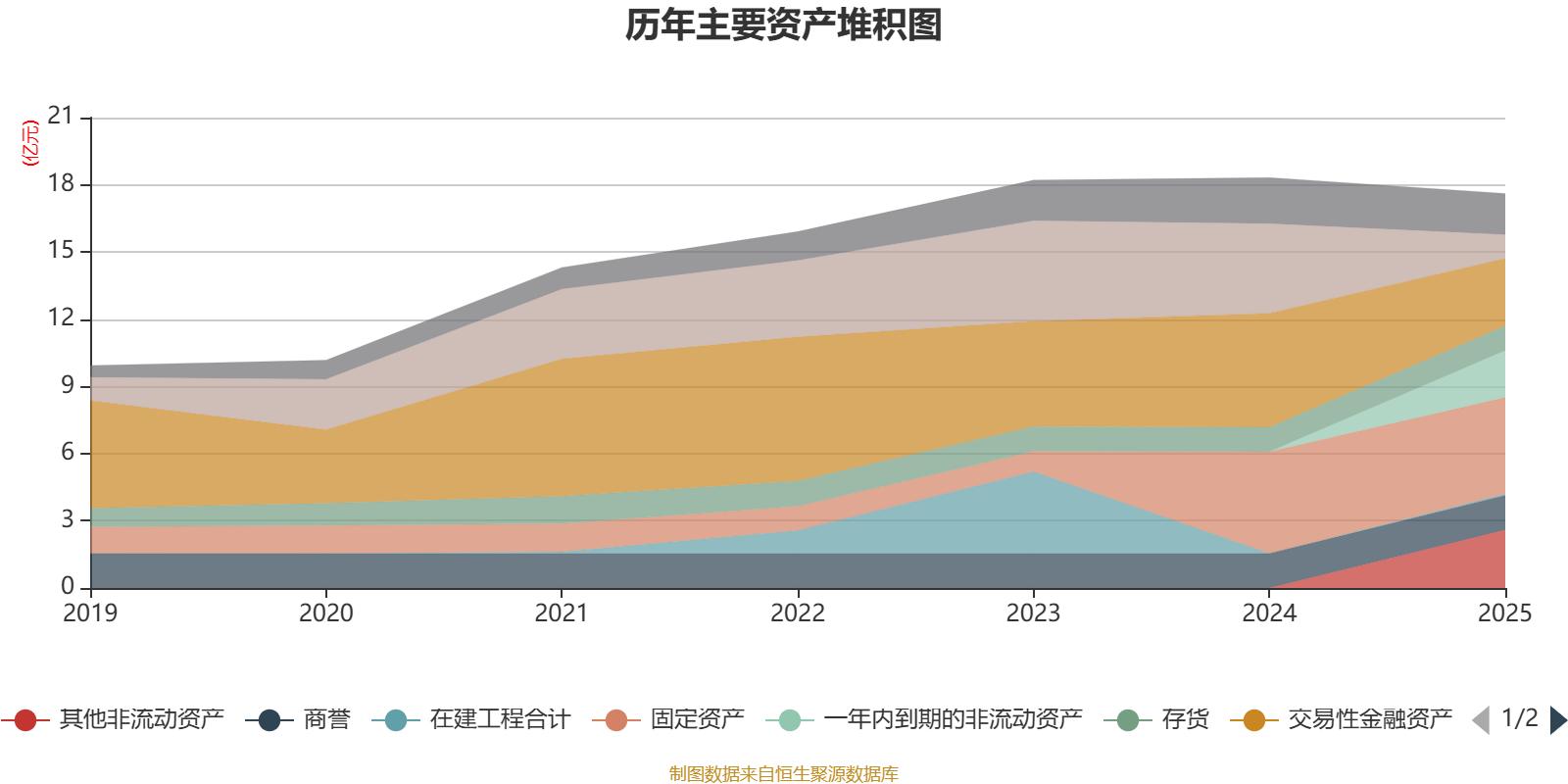 资产重大变化方面,截至2025年末,公司货币资金较上年末减少73.54%,占公司总资产比重下降15.83个百分点;其他非流动资产占公司总资产的14.74%,上年末为0;一年内到期的非流动资产占公司总资产的11.9%,上年末为0;交易性金融资产合计较上年末减少40.82%,占公司总资产比重下降10.68个百分点。