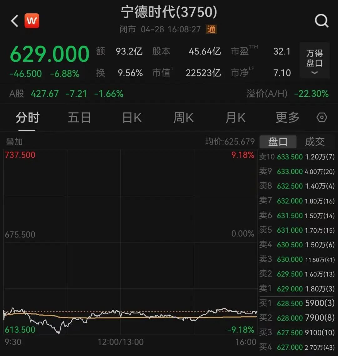 锂电龙头宁德时代大跌