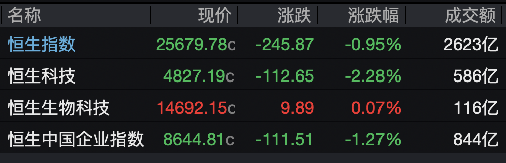 恒生科技指数大幅下跌2.28%
