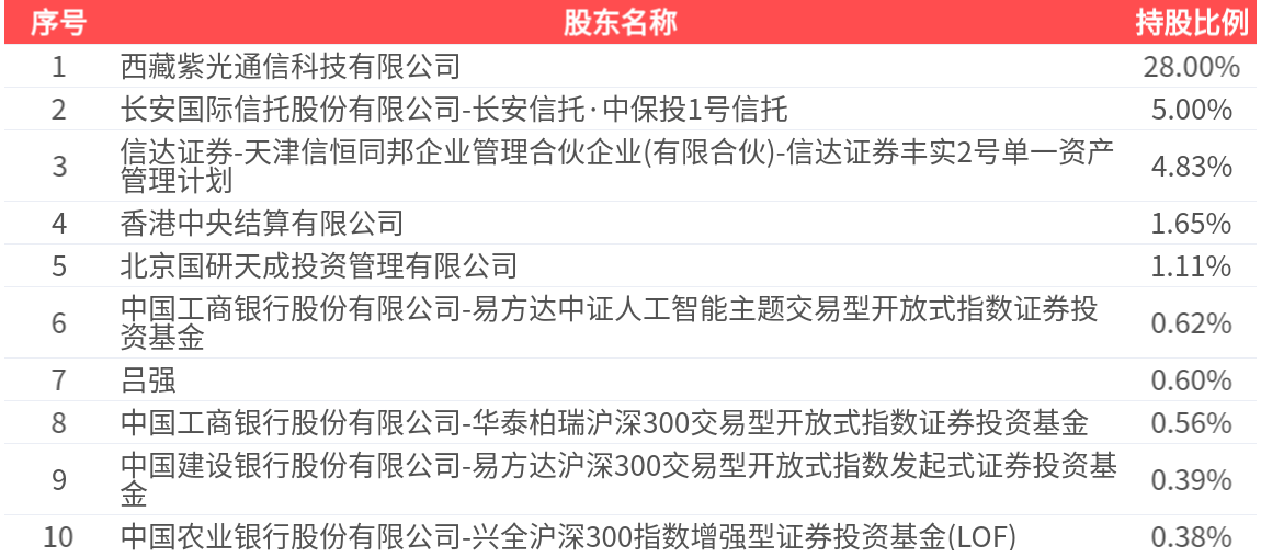 公司股东户数为30.15万户,前十大股东持股数量为12.34亿股,占总股本比例为43.14%,前十大股东持股情况如下: