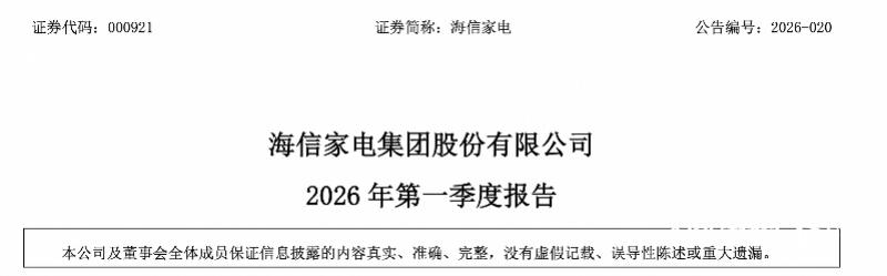 2025年的业绩报表,已为海信家电的困境埋下伏笔。全年营收近五年首现负增长,归母净利润同步下滑,其中第四季度的表现尤为刺眼:单季营收同比大降26.03%,扣非净利润更是暴跌62.79%,成为拉低全年业绩的关键因素。进入2026年,颓势未改,一季度营收与净利润的双重下滑,让市场对其业绩复苏的期待再次落空。