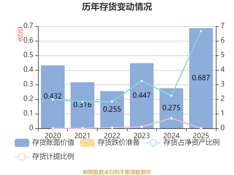从存货变动来看,截至2025年末,公司存货账面价值为6869.74万元,占净资产的6.67%,较上年末增加4117.21万元。公司本期没有计提存货跌价准备。