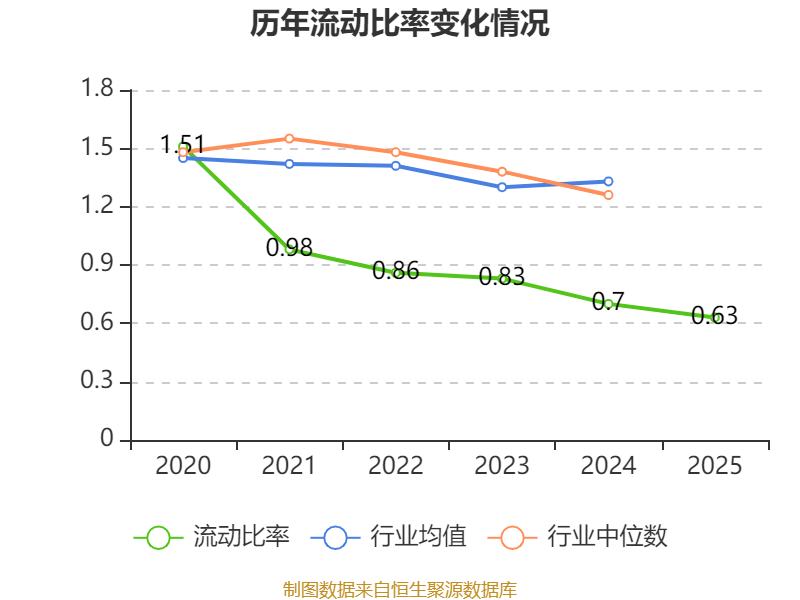 2025年,公司流动比率为0.63,速动比率为0.51。