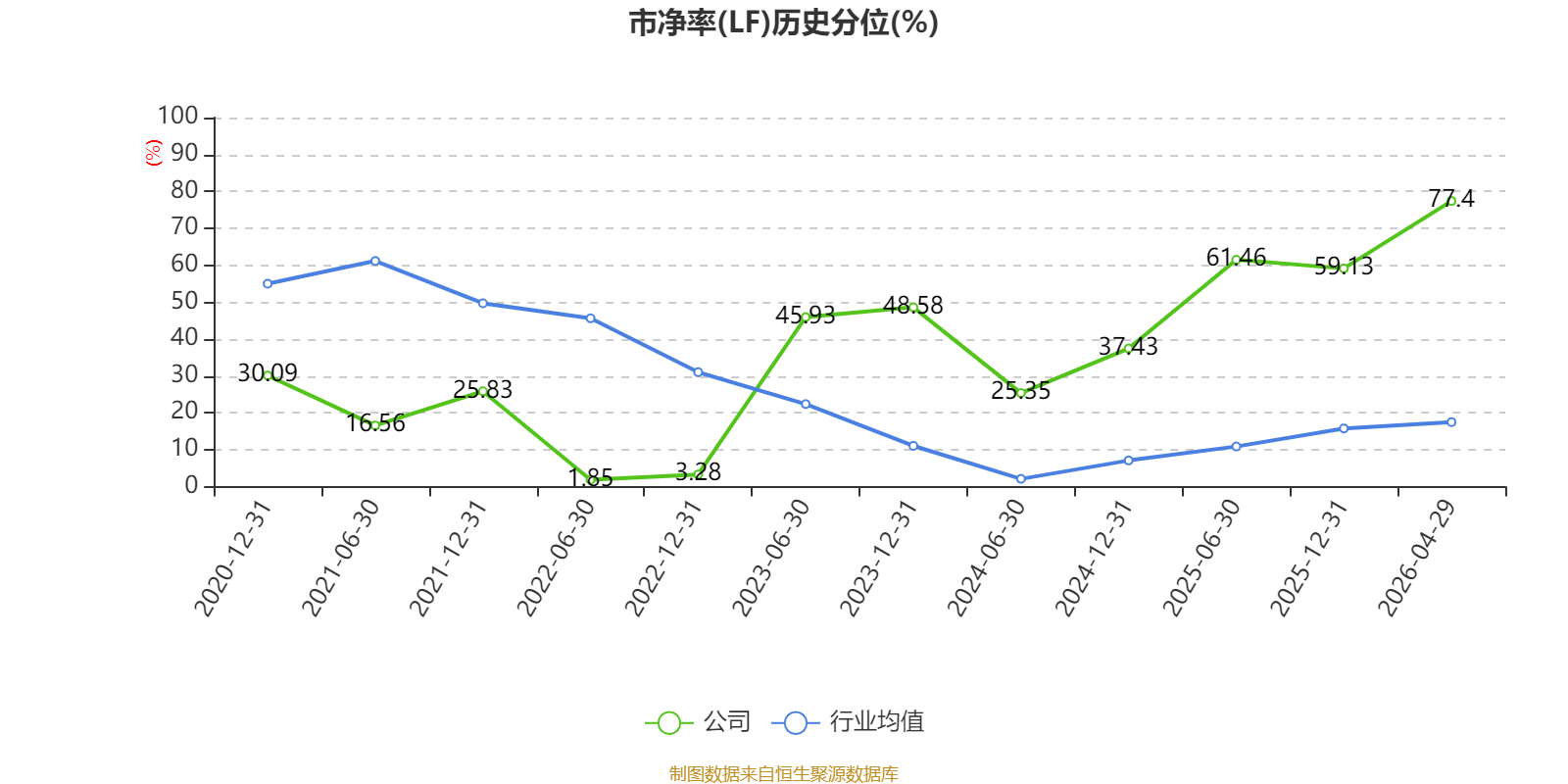 市盈率、市净率为负时,不显示当期分位数,会导致折线图中断。