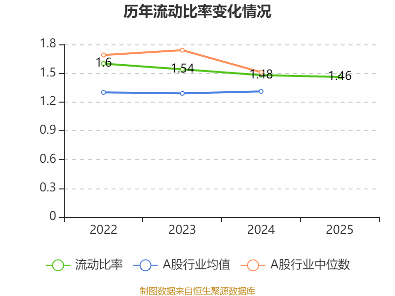 2025年,公司流动比率为1.46,速动比率为1。