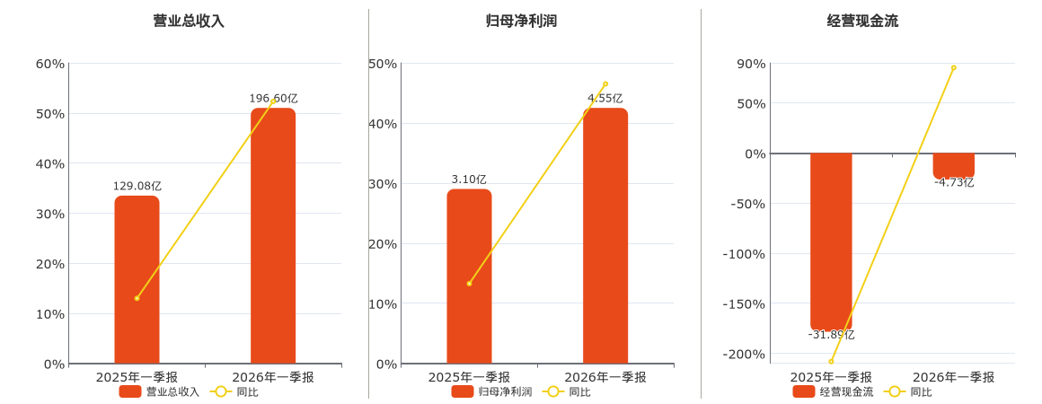原标题:中国重汽(000951.SZ):2026年一季报净利润为4.55亿元、同比较去年同期上涨46.50%