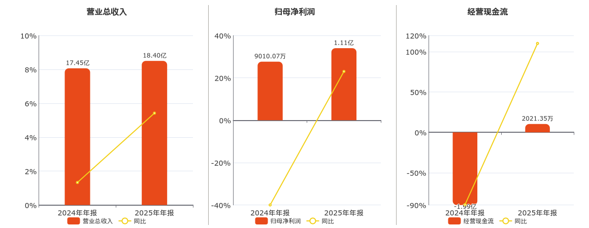 公司营业总收入为18.40亿元,在已披露的同业公司中排名第146。归母净利润为1.11亿元,在已披露的同业公司中排名第149。经营活动现金净流入为2021.35万元,在已披露的同业公司中排名第237。