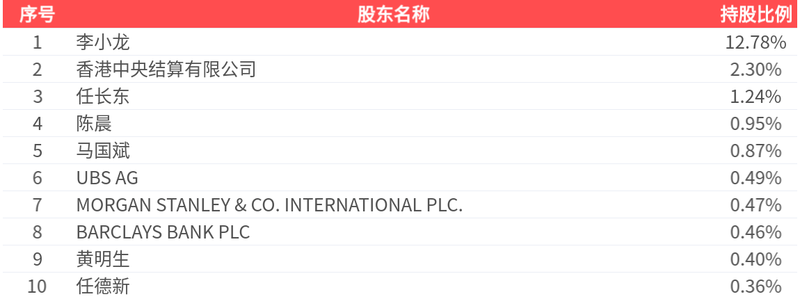 公司股东户数为15.63万户,前十大股东持股数量为2.80亿股,占总股本比例为20.33%,前十大股东持股情况如下: