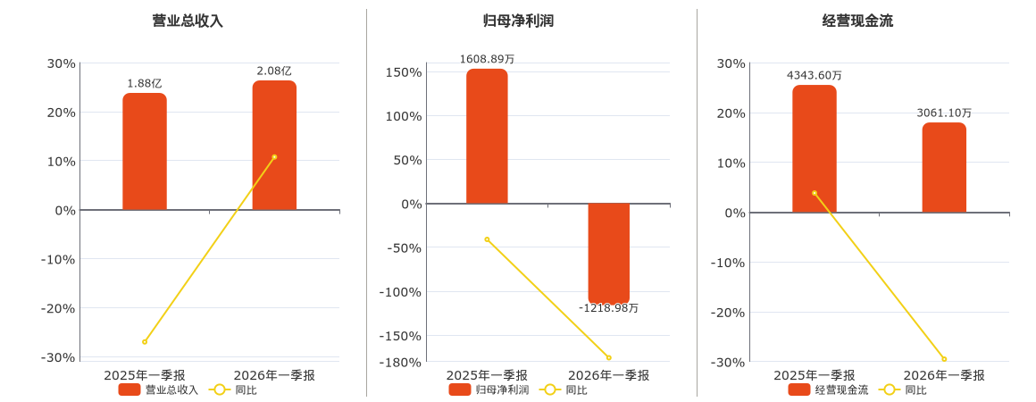 原标题:二六三(002467.SZ)2026年一季报净利润为-1218.98万元,由盈转亏